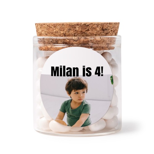 Velg ditt eget design for Glasskrukker med runde klistremerker - 12 stk