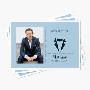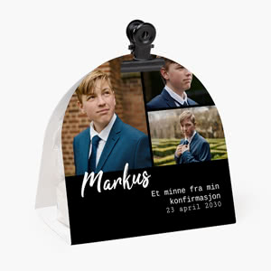 Fokuspunktet i enhver konfirmasjon er konfirmanten! Og på Smartphoto får du mulighet til å la det skinne igjennom i borddekkingen til konfirmasjonen. Her på siden kan du nemlig designe din egen bordpynt i konfirmantens yndlingsfarger og med bilder av hovedpersonen selv. Utvalget av konfirmasjonspynt inkluderer blant annet flagg, bestikkuverter, flaskeetiketter, menykort og bordkort til konfirmasjonen.